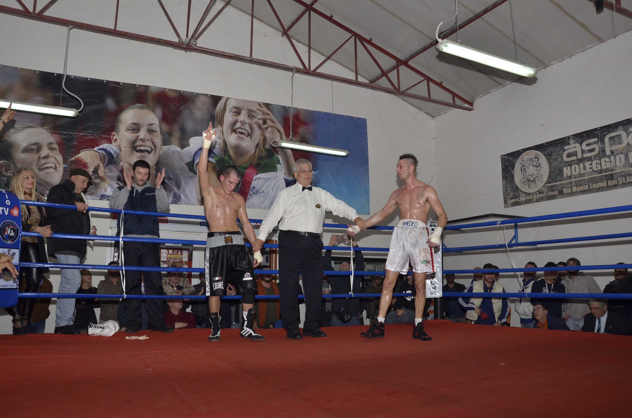 Un grande risultato di pubblico e incontri di altissimo livello per il ritorno all’attività agonistica e alla riunioni dell’AS Latina Boxe Parisi, che lo scorso venerdì all’interno della palestra sulla 156 dei Monti Lepini, quartier generale della società sportiva, ha dato vita al III Memorial Giovanni Parisi. Prima della riunione una serie di interventi da parte di alcuni dei dirigenti della società che ha ripreso la sua ricca attività pugilistica e non solo. Tra gli interventi hanno trovato spazio quello di Alberto Spelda, delegato provinciale della Federazione Pugilistica Italiana e di Angela “Amira” Cannizzaro, campionessa europea aspirante al titolo mondiale che combatte per i colori della scuderia Parisi&Chiavarini, e che non ha voluto perdersi il ritorno all’attività della società sportiva ed ha trascorso l’intera giornata a visitare il capoluogo pontino. Prima dei match della serata Lorenzo, un ragazzo down, si è esibito sul ring strappando applausi a scena aperta. L’iniziativa si colloca nella collaborazione tra la società presieduta da Mirko Parisi e il Comitato Italiano Paralimpico. Nel primo incontro della serata, disputato tra i giovani Mirko Pintus ed Antonio Scatena, si è imposto quest’ultimo, in rappresentanza della società abruzzese Rosetana Boxe, che ha avuto la meglio ai punti sul giovane talento di casa, al termine di un match molto equilibrato. Nel secondo incontro opposti Massimo Parisi per l’AS Latina Boxe Parisi e Gianfranco Rinaldi. I due pugili danno vita ad un match molto spettacolare e ricco di colpi, tanto da convincere i giudizi ad assegnare il punteggio di parità. Il terzo incontro del ricco programma dei dilettanti ha visto la netta affermazione del pontino Fabrizio Roma che ha avuto la meglio ai punti su Italo Morelli. Il quarto incontro della serata ha visto opporsi il pontino Fabio Cascone e Davide Aceto della rappresentativa abruzzese. Alla fine il verdetto ha sancito la parità tra i due pugili che non si sono risparmiati nel corso dei tre round previsti. Nel quinto incontro vittoria di Alessio Di Fiore opposto ad Alberto Ippoliti. Introdotte dalla campionessa europea e aspirante al titolo mondiale Angela “Amira” Cannizzaro, si sono sfidate nell’ultimo match tra dilettanti la beniamina di casa Jessica Forino e l’abruzzese Eleonora Alfano, con la netta vittoria della prima ai punti. Prima del clou della serata l’intervento musicale, molto apprezzato, della cantante Martina Icolaro. Poi tutti gli occhi degli spettatori si sono concentrati su Alessio Capuccio, che dopo un paio di round di studio ha imposto la sua boxe al cospetto di un buon pugile quale è Maurizio Amedeo. Alla fine il verdetto ha premiato senza alcun dubbio la classe del talento di casa, che prosegue la sua corsa nel mondo dei professionisti. Alla fine della serata è tanta la soddisfazione del presidente Mirko Parisi: “E’ stata una serata praticamente perfetta, con i nostri pugili che hanno combattuto in maniera esemplare e con il nostro Alessio Capuccio che ha vinto nettamente davanti agli occhi dell’altra nostra punta di diamante, Angela Cannizzaro, che non è voluta mancare al ritorno all’attività agonistica della nostra società. Non posso che ringraziare chi si è speso affinché tutto andasse per il meglio e rilancio la sfida ai prossimi appuntamenti. A dicembre è già stata programmata una riunione e a metà mese ci sarà il ritorno sul ring di “Amira”. Intanto – ha concluso Mirko Parisi – ci godiamo il momento consapevoli che possiamo ancora migliorare e proseguire nei nostri obiettivi”.