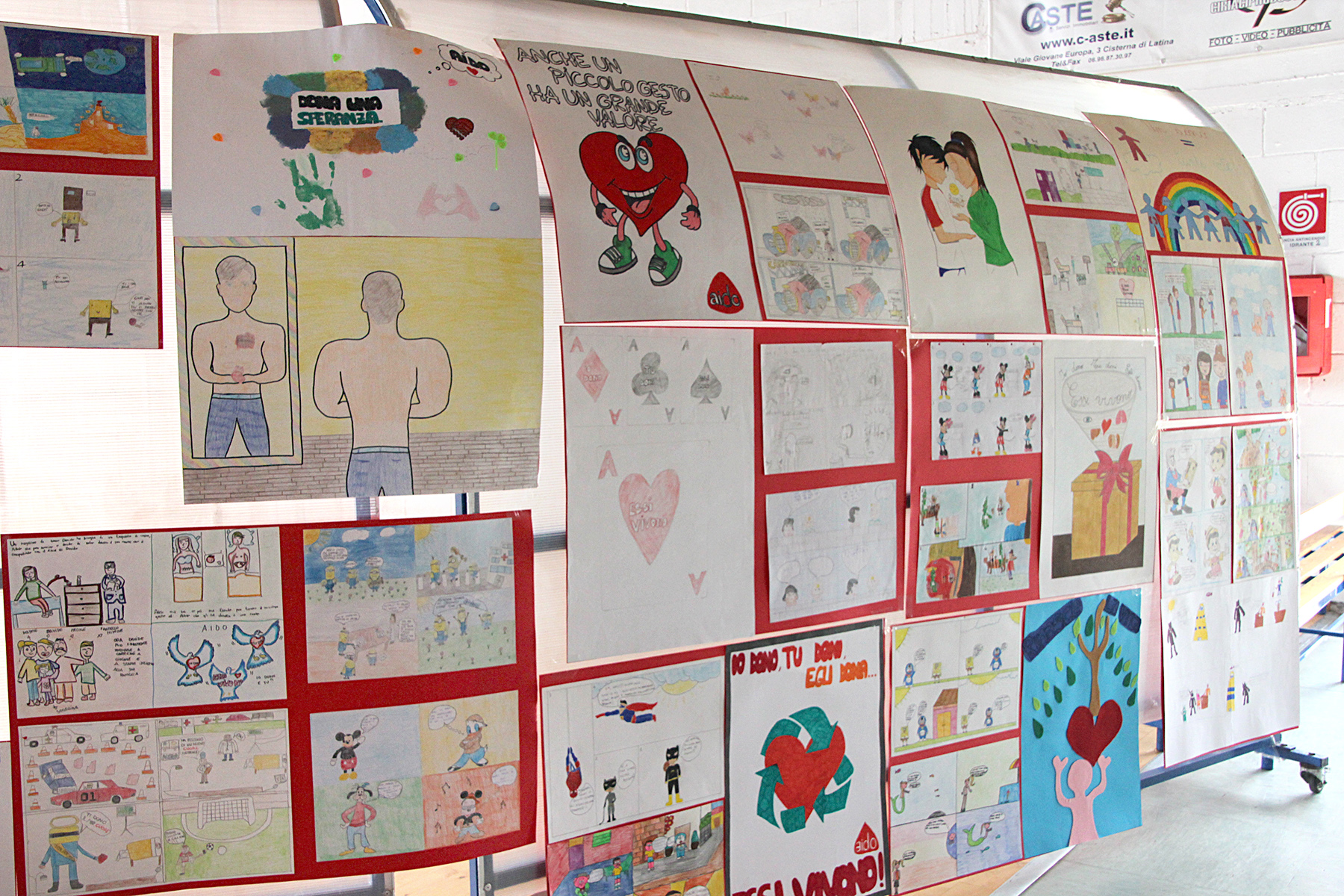 Ogni anno più grande la festa per la premiazione del concorso “Donare è” organizzata dall’AIDO di Cisterna per gli studenti degli istituti scolastici del territorio. Con il tema “Io dono, tu doni, egli dona … essi vivono”, quest’anno l’Aula consiliare non è riuscita a contenere tutti i giovani concorrenti al punto che la cerimonia si è dovuta tenere questa mattina all’interno del Palazzetto dello Sport nel quartiere San Valentino. Di fronte ad una folta e gioiosa, ma anche trepidante, platea di pretendenti, il presidente regionale AIDO Marina Padovan, quello provinciale Agnese Casini, quello comunale Angelo Lattao, e la commissione esaminatrice hanno finalmente reso noti e premiato i vincitori di questa riuscitissima settima edizione del concorso. Oltre 250 gli elaborati realizzati in tecniche diverse che hanno richiesto un difficile e impegnativo esame da parte della commissione composta dai docenti rappresentanti dei tre istituti scolastici Caetani,