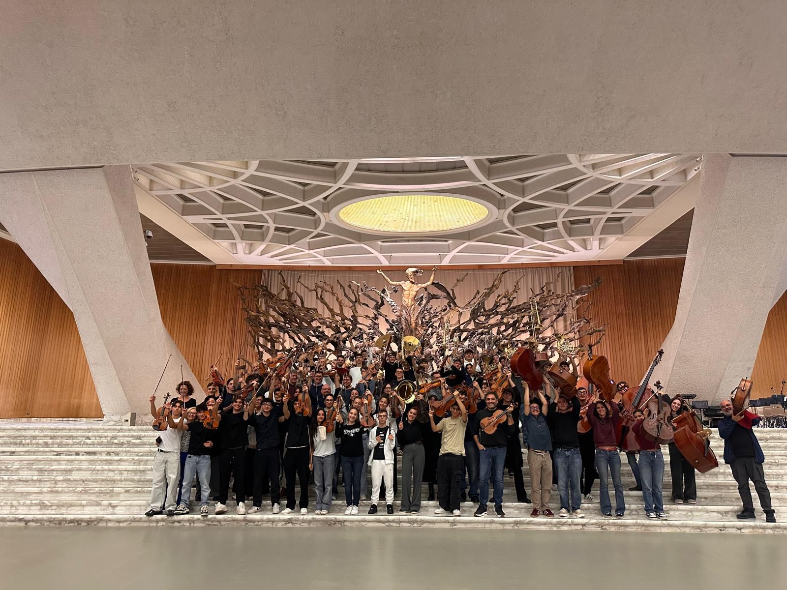 da solista con l’orchestra sinfonica Rossini di Pesaro. È proprio come prima viola che Alessandro ha preso parte all’orchestra nazionale, portando sul palco la sua passione e la sua sensibilità artistica. Accanto a lui, Francesco Pica, giovane flautista pontino seguito dal professor Gianni Cellacchi, già vincitore del Primo Premio al Crescendo International Music Competition e protagonista di un’esibizione alla Carnegie Hall di New York. Il suo talento è stato più volte riconosciuto in prestigiosi concorsi come Sette Note Romane, San Vigilio In…Canto, Città di Latina, Severino Gazzelloni e Premio Persichilli dove quest’anno ha conquistato anche il secondo posto assoluto. Il debutto dell’Orchestra Nazionale dei Licei Musicali si è tenuto nella suggestiva Sala Paolo VI dello Stato del Vaticano, in occasione del Giubileo del Mondo Educativo promosso dal Dicastero per la Cultura e l’Educazione. Un evento di portata storica, che ha visto 56 giovani musicisti esibirsi per la prima volta davanti a un pubblico d’eccezione e alla presenza di Papa Leone XIV, del Ministro Giuseppe Valditara e di Francesco Manfredi, presidente dell’INDIRE, partner del progetto. Per i due studenti del Liceo “Manzoni”, questa esperienza ha rappresentato non solo un traguardo artistico, ma anche un segno tangibile dell’eccellenza formativa e culturale di un istituto che da anni valorizza il talento, la passione e la crescita personale dei suoi ragazzi.