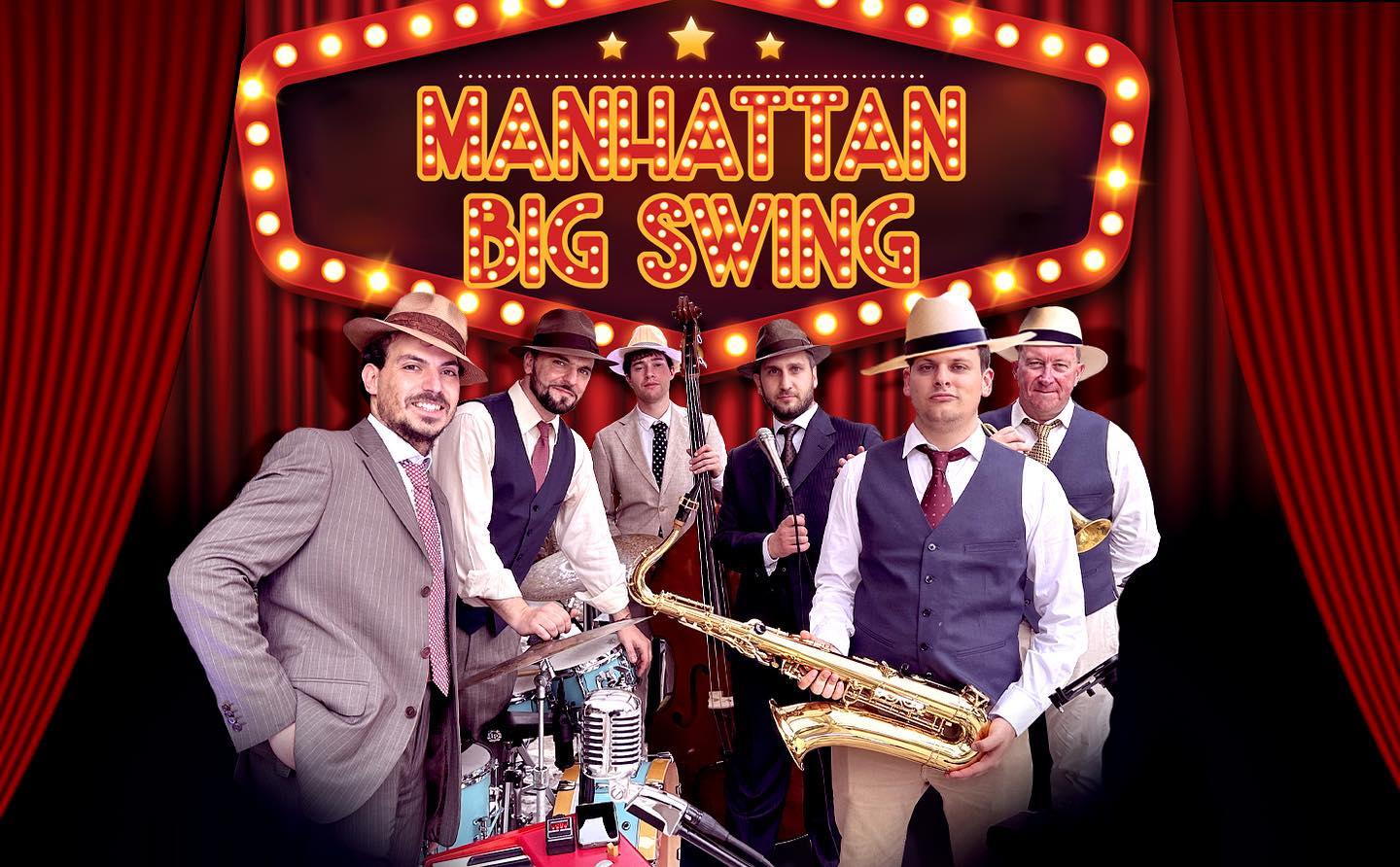 Si parte giovedì 24 luglio con la Manhattan Swing Band, un ensemble da sei elementi guidato dalla voce di Simone Partigianoni; un viaggio tra Fred Buscaglione e Michael Bublé, tra twist e mambo, per uno spettacolo elegante, frizzante e ricco di energia. Sul palco anche Giovanni Colasanti alla batteria; Sergio Caruso al piano; Settimio Savioli alla tromba; Damiano Drogheo al sax, Davide Di Mascio al contrabbasso e Luca Giustozzi al trombone.