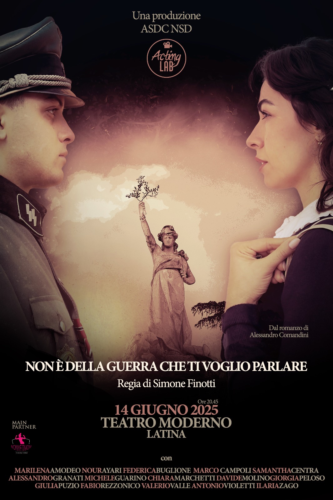 Chiude l’impegnativa stagione teatrale la compagnia dell’ACTING LAB in scena domenica 14 giugno alle ore 20.45, al Teatro Moderno di Latina con “Non è della guerra che ti voglio parlare”, l’intenso adattamento teatrale del romanzo di Alessandro Comandini, con la regia di Simone Finotti. C’è una guerra che non si combatte con le armi, ma con la memoria, con l’amore, con il coraggio delle scelte. Una guerra interiore, che non fa rumore ma lascia segni profondi. Siamo nella primavera del 1944. Cisterna è solo macerie, la Pianura Pontina è un’enorme distesa d’acqua e zanzare. I tedeschi, nella ritirata, mettono in atto una delle prime operazioni di guerra biologica della storia, sabotano le opere di bonifica, favorendo la ricomparsa della malaria. Ma il centro della storia non è questo. Il cuore batte altrove. Sofia, giovane donna cisternese, è l’anima di questo racconto. Innamorata di Altiero, pilota della Regia Aeronautica che dopo l’Armistizio sceglie di combattere con gli Alleati, Sofia resta sola, senza notizie, in un tempo sospeso. Quando il destino la pone davanti a Gerard, un soldato austriaco stanziato a Cisterna, le sue certezze vacillano. Mentre la città si prepara all’esodo e l’eco dei bombardamenti si avvicina, Sofia vive il conflitto più intimo e lacerante, scegliere, aspettare, lasciar andare. Lo spettacolo intreccia storia e sentimento, memoria collettiva e vicende personali. Attraverso lo sguardo di Sofia e dei suoi familiari, la grande Storia si fa umana, fragile, dolorosamente viva. E ci racconta di un popolo costretto a fuggire proprio quando la libertà sembrava vicina. “Non è della guerra che ti voglio parlare” è una produzione Acting Lab, main partner MFM srl. In scena: Marilena Amodeo, Nour Ayari, Federica Buglione, Marco Campoli, Samantha Centra, Alessandro Granati, Michele Guarino, Chiara Marchetti, Davide Molino, Giorgia Peloso, Giulia Puzio, Fabio Rezzonico, Valerio Valle, Antonio Violetti, Ilaria Zago.