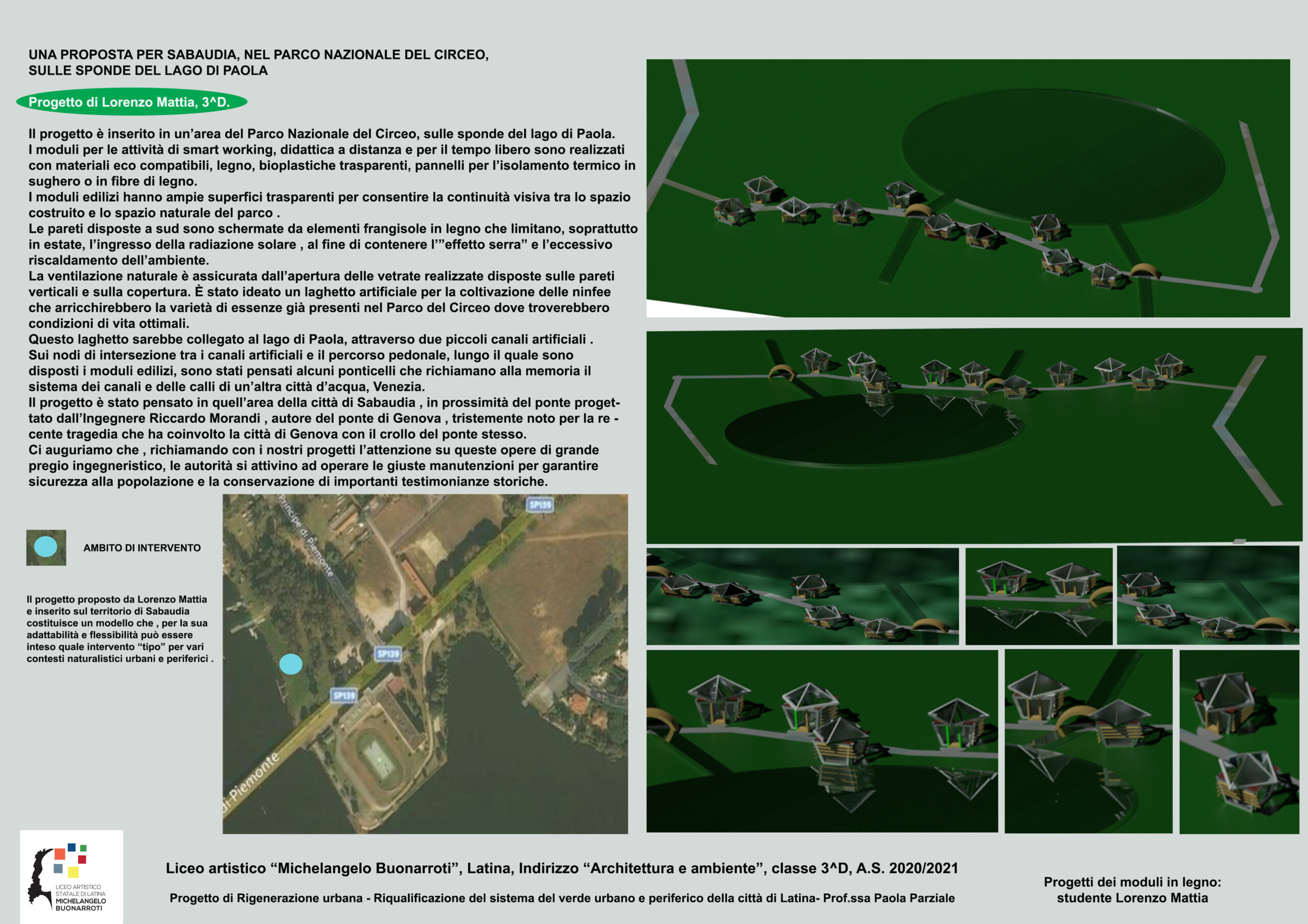 I ragazzi del Liceo Artistico “Michelangelo Buonarroti”, con i loro progetti hanno elaborato una proposta volta al recupero dei parchi pubblici sul territorio provinciale, con proposte di architetture eco-sostenibili per lo smart working e la didattica a distanza , ispirati al progetto del Parco integrato del Polcevera.