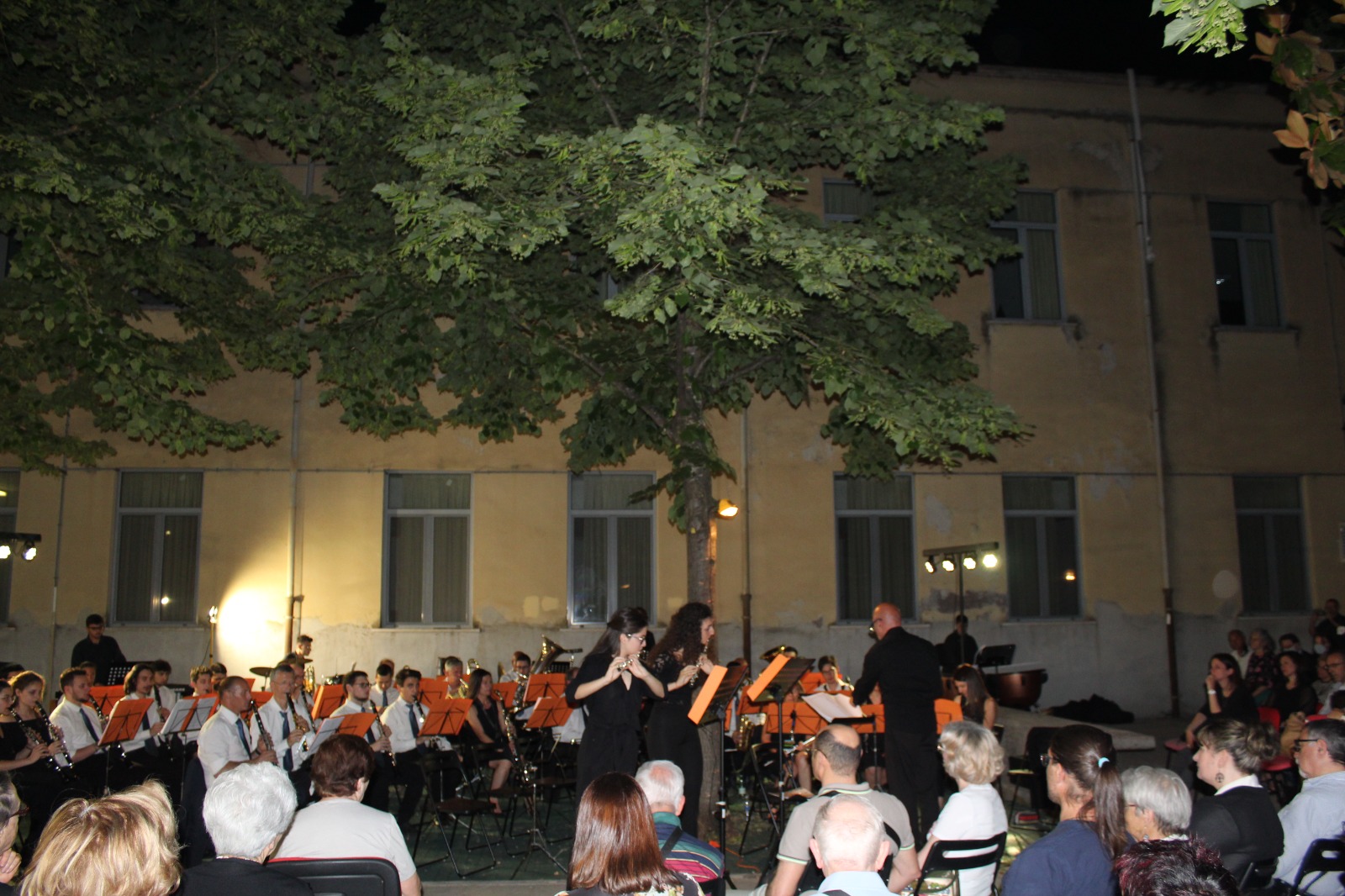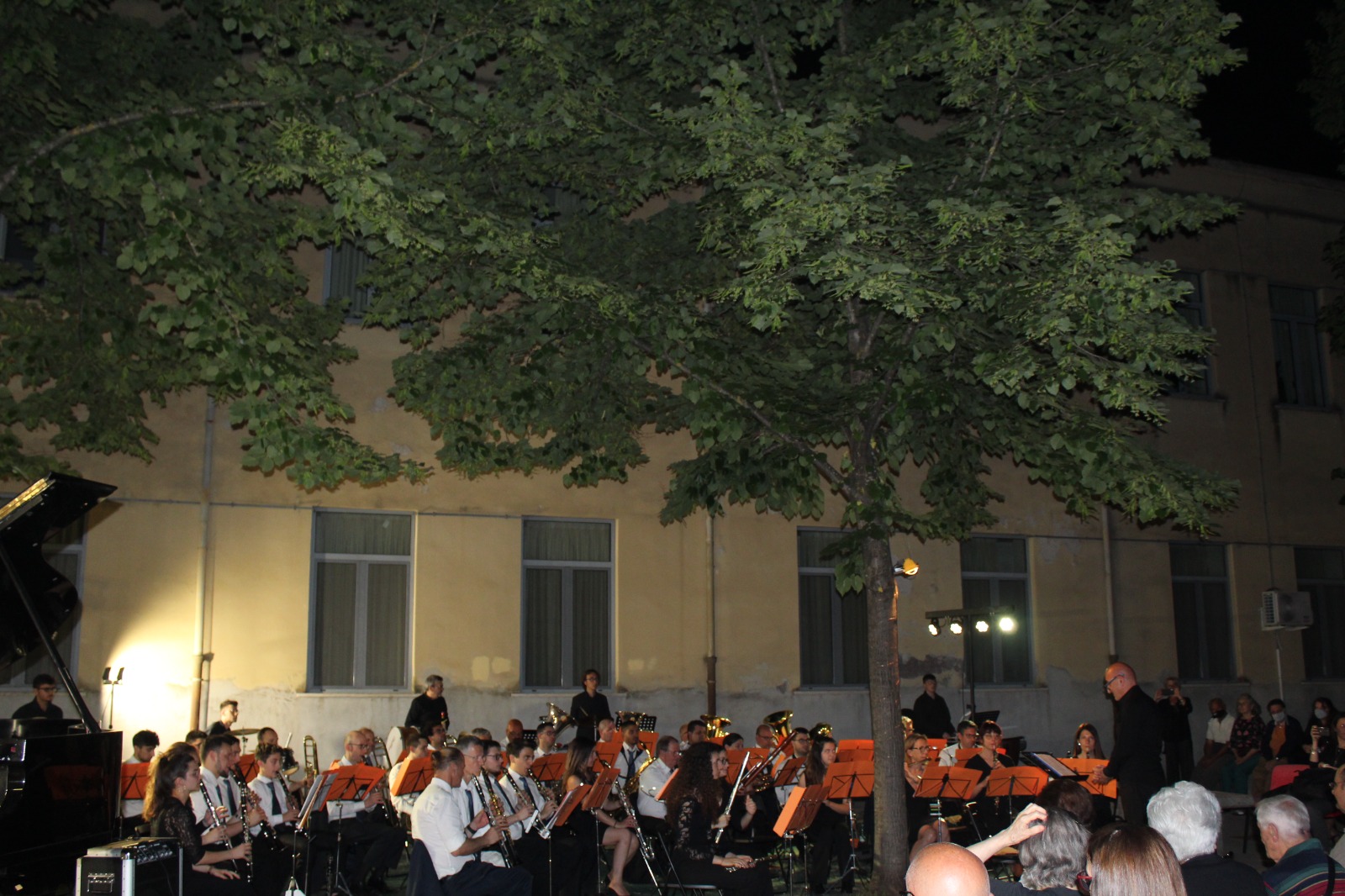 Si è aperto con un omaggio al compositore Carlo Della Giacoma il concerto dell’inizio dei festeggiamenti per il 70° anno dell’Orchestra di fiati “G. Rossini” di Latina. Il giardino del Conservatorio Statale di Musica Ottorino Respighi che ha ospitato il concerto “Settanta…e non sentirli!” era gremito di spettatori che rapiti dalla musica tenevano il tempo, con i piedi e con le mani. L’Orchestra di Fiati diretta dal Maestro Raffaele Gaizo, ha eseguito un particolare repertorio che partendo dagli inizi del ‘900 è arrivato ai nostri giorni, dando spazio a brani originali e trascrizioni per orchestra. Fra i brani proposti anche una marcia moderna scritta da Fabrizio Cecconi, uno dei giovani musicisti dell’Orchestra di fiati “Gioachino Rossini” di Latina, la marcia “Via Mazzini” è stata scritta in memoria del nonno Mauro. Nel corso della serata sono stati presentati alcuni dei ragazzi che hanno intrapreso la carriera musicale, cominciando proprio a suonare ai concerti della banda, a sostegno del fatto che la banda è da sempre un palcoscenico importante per i giovani che si esibiscono in pubblico imparando a gestire l’ansia, scoprendo i loro limiti ed imparando a superarli confrontandosi con professionisti. Con l’Orchestra di fiati “G. Rossini” si è esibito anche il coro di clarinetti che, nell’intermezzo a loro dedicato, sono stati diretti dal m. Ugo Boncompagni. Pioggia di applausi per i solisti Remigio Coco, Arianna Bisceglia e Maria Chiara Sciacca che si sono esibiti, al piano nella Celebre Tarantella di Louis Moreau Gottschalk e ai flauti con una danza celtica. La serata si è conclusa con l’immancabile bis, il Maestro Raffaele Gaizo ha scelto per congedare il pubblico con un incalzante marcia dal titolo High Society presa ad esempio per come la banda musicale abbia influito, in modo determinante, anche alla nascita del jazz. Ma, giusto il tempo di riordinare gli strumenti e sono subito alle prove per l’esibizione di Giovedì 2 Giugno. L’orchestra di fiati in versione bandistica accompagnerà le celebrazioni per ricordare la nascita della Repubblica Italiana. Appuntamento alle ore 9.30 di Giovedì 2 Giugno in piazza della Libertà a Latina per i consueti festeggiamenti. La partecipazione è libera