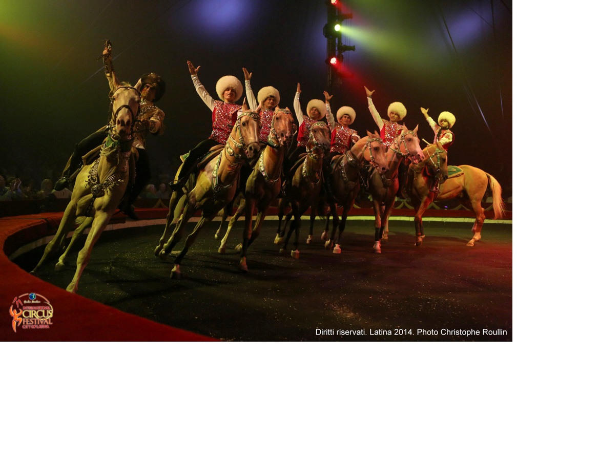 Quasi quattro ore di grande Circo per ciascuno dei due differenti spettacoli di selezione andati in pista Giovedì 16 e Venerdì 17 Ottobre a Latina. 25 attrazioni superlative, presentate con ritmo incalzante, per un “debutto” suggellato da una tripla “standing ovation”. Ad accendere l’entusiasmo del pubblico dello Chapiteau di Latina l’eccellente performance del giovane russo Vasily Timchenko che, in rappresentanza del Circo di Stato russo “Rosgoscirk “, ha portato in pista i suoi splendidi leoni marini: “il più bel numero di leoni marini mai visto al mondo”, queste le parole che, soprattutto fra gli addetti ai lavori, hanno risuonato in più lingue all’uscita dagli spettacoli. Sorprendente, poi, il numero di “testa a testa” allestito dalla grande Zhejiang Troupe proveniente dalla Repubblica Popolare Cinese. Le evoluzioni degli artisti cinesi sono parse al limite del credibile. Di particolare pregio costumi, trucco e coreografie nel rispetto dell’antica tradizione cinese di Circo. Finale da capogiro, ben oltre la mezzanotte, con i “cosacchi” e la superba cavalleria del Presidente della Repubblica del Turkmenistan: una vera esplosione di energia, tradizione popolare ed altissima tecnica che hanno contaminato tutto il pubblico presente. Tra loro tanti turkmeni con abiti tipici e bandiere. Degno di nota il finale della loro esibizione con l’esposizione della doppia bandiera, italiana e turkmena, issata al vertice di una piramide umana sul dorso di due splendidi cavalli al galoppo. Ad applaudire il debutto di questa sedicesima edizione del Festival un parterre esclusivo: tra i tanti nomi illustri del mondo del Circo presenti abbiamo riconosciuto Stefano Orfei Nones e Brigitta Boccoli, Livio e Corrado Togni, il Presidente dell’Ente Nazionale Circhi, Antonio Buccioni. Da oggi, sabato 18 Ottobre, si entra nel vivo della competizione: la Giuria Tecnica Internazionale sarà operativa in occasione dei due spettacoli odierni, alle 16,30 (“show B”) ed alle 21,00 (“show A”). Solo la metà degli artisti in competizione potrà accedere alla finale del 20 Ottobre.