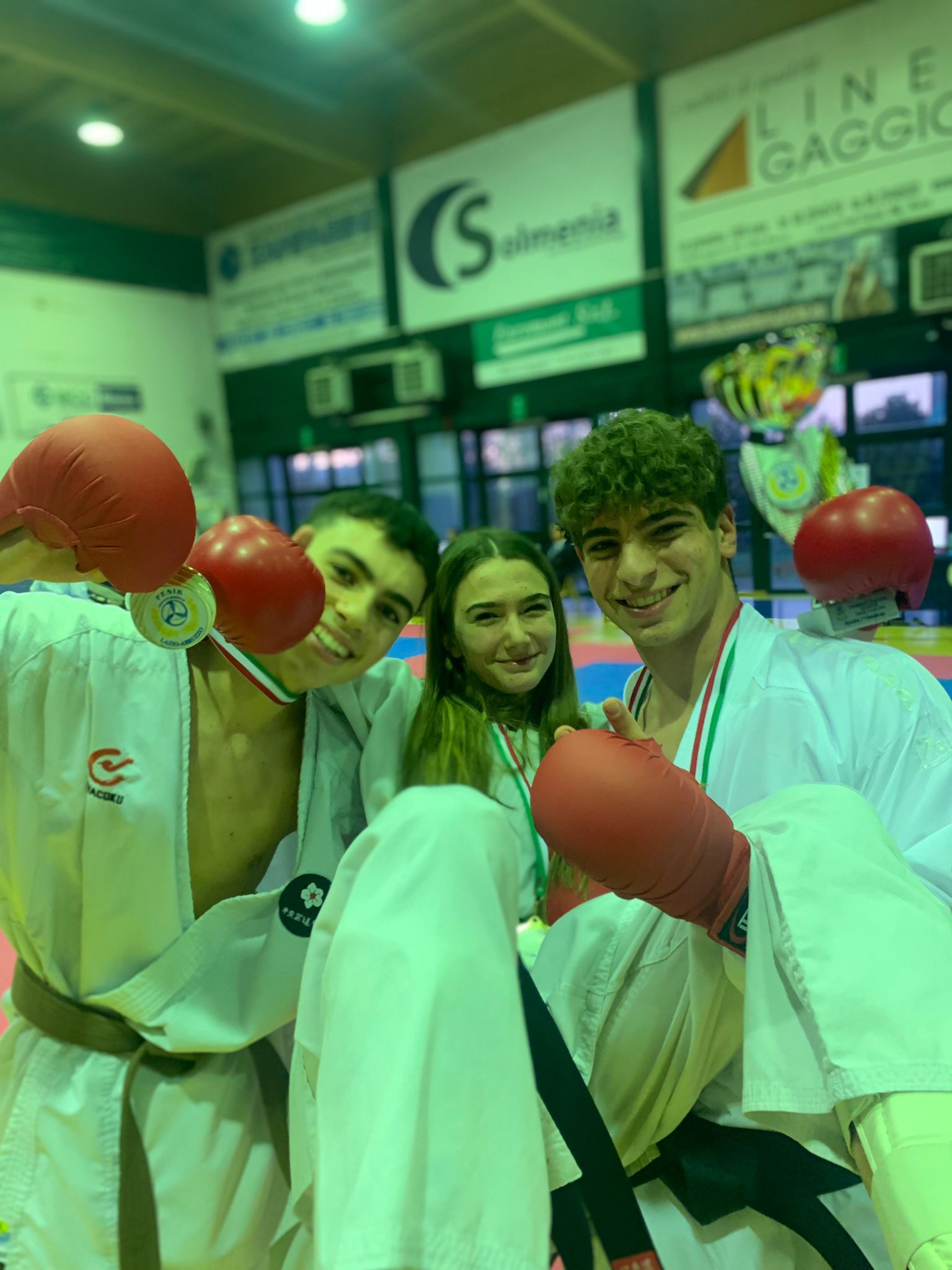 L’associazione latinense, guidata dalla Maestra Sabrina Tucci, e coadiuvata per l’occasione dalle cinture nere Roberto Coletti e Simone Tucci, ha partecipato al Campionato Regionale del Lazio e Abruzzo dedicato alla specialità del combattimento. Freschi di vittoria al recente Campionato Regionale di kata, a questo appuntamento il gruppo di Latina era meno folto del solito, anche perché la specialità del combattimento è meno adatta ai principianti, che hanno potuto seguire da casa le avventure del gruppo. Di fatto, in proporzione ai partecipanti, i risultati sono stati ancora più straordinari perché su 30 gare, 26 si sono trasformate in prestazioni da podio, ovvero 5 ori, 12 argenti, 9 bronzi.
