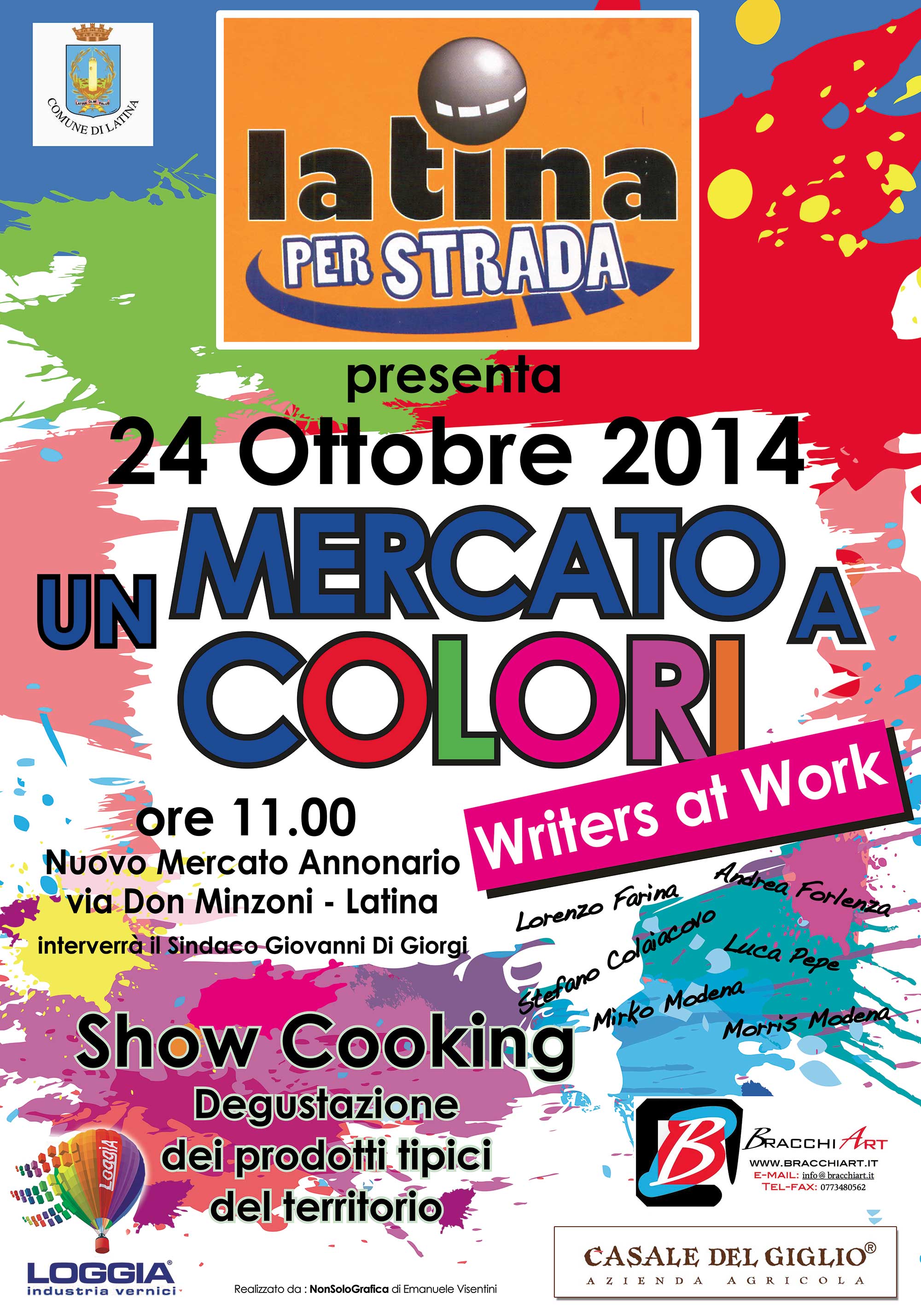 Tutto pronto per l’iniziativa artistica di “Latina per Strada” dal titolo suggestivo che è tutto un programma: “Un Mercato a Colori”. La manifestazione suddivisa in tre STEP, fissa il primo appuntamento per venerdì 24 ottobre presso il cortile del nuovo mercato annonario di via Don Minzoni. Il progetto, fortemente voluto dall’associazione e dall’omonima rivista diretta da Domenico Ippoliti, è patrocinato dal Comune di Latina e prende spunto dall’idea originaria di Andrea Marchiella e dal progetto artistico sviluppato dalla scenografa Elisa Saltarelli, che ha coordinato le due squadre di artisti, i Senior e i Writers. Il primo STEP avrà inizio venerdì 24 alle 11.00: alla presenza del Sindaco Giovanni Di Giorgi ci sarà la action art della squadra dei writers composta da Lorenzo Farina, Luca Pepe, Andrea Forlenza, Stefano Colaiacovo, Mirko Modena e Morris Modena. In contemporanea alla performance artistica avrà inizio uno spettacolare show cooking a cura dello staff di “Burro e Bollicine”, con gli chef diretti da Mario Di Marino. La nota associazione culinaria, partner di questa manifestazione, offrirà al pubblico i migliori piatti realizzati estemporaneamente con i prodotto ortofrutticoli offerti dagli esercenti del mercato. Un ringraziamento va agli altri partner di questo evento che sono: Bracchi Art, Loggia vernici, Casale del Giglio e tutti gli operatori del mercato annonario. Vi ricordiamo che il secondo STEP, che coinvolgerà il team degli artisti Senior, andrà ad aggiungere un altro importante tassello a questo progetto artistico e sarà presentato a dicembre, in occasione dei festeggiamenti per il compleanno di Latina.