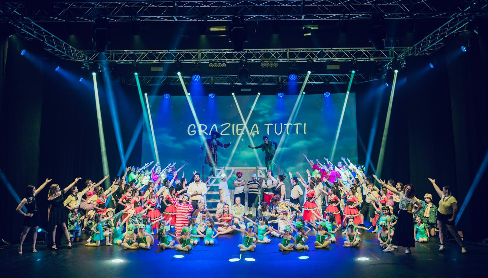 Più che un saggio di fine anno accademico, Le fantastiche avventure di Peter Pan portate in scena dalla scuola d’Arte “Non Solo Danza” diretta da Roberta Di Giovanni, sono state un vero spettacolo, degno di ben più importanti palcoscenici. Nello spazio ricavato all’interno del Palabianchini, sfruttando il parquet delle gare, adeguatamente lastricato con un tappeto nero idoneo per la danza, e con le gradinate per il pubblico, che hanno creato l’effetto anfiteatro, si aveva davvero l’impressione di essere a teatro. Scenografie, semplici, essenziali e belle, supportate da splendide luci e spettacolari effetti speciali hanno fatto il resto. La storia, nota ai più, è stata liberamente riadattata attingendo sia dalla versione musical sia da quella usata per il film della Disney coinvolgendo così, in modo trasversale, grandi e piccini. A fare da collante alle entusiasmanti coreografie di Jessica Vanzari (propedeutica e predanza), Consuelo Ziroli (danza classica), Serena di Luzio (video dance hip hop) e Roberta Di Giovanni (danza moderna) gli attori della Splatters Company, della In Company e del corso intermedio della scuola di recitazione. Uno spettacolo emozionante, pieno di risate e lacrime con il giusto equilibrio fra classico e moderno. Effetti sonori e laser per una Trilly capricciosa e sorprendente come, il volo su Londra verso l’Isola che non c’è di Peter Pan e dei tre fratellini Wendy, Michele e Gianni. Per non parlare di panchine, scale, barili, finestre e letti che apparivano come per magia, con cambi a scena aperta, davanti ad un maxi schermo che per tutta la sera ha aiutato, anche i più scettici, a sognare. Un pubblico coinvolto e divertito che teneva il tempo e canticchiava, sulla colonna sonora della favola delle favole con finale a sorpresa, un fermo immagine degno di Broadway. L’attenzione ai dettagli quasi maniacale è servita a creare uno spettacolo fluido e sorprendente. Ed ora, giusto il tempo di riprendere fiato e, per i ragazzi della Non Solo Danza, inizieranno gli appuntamenti estivi, alcuni saranno in tour con JAx, altri gruppi parteciperanno a diversi festival a Brindisi, Roma e Verona mentre, la Splatters Company e la In Company saranno in scena, nell’ambito di alcune rassegne teatrali della provincia.
